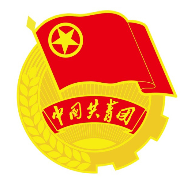第八条 团徽上团旗的旗面和绶带为红色,团旗的五角星和环绕它的圆圈、旗边、旗杆、齿轮、麦穗、初升的太阳及其光芒、“中国共青团”五个字为金色。红为正红,金为大赤金。“中国共青团”字体为毛体。