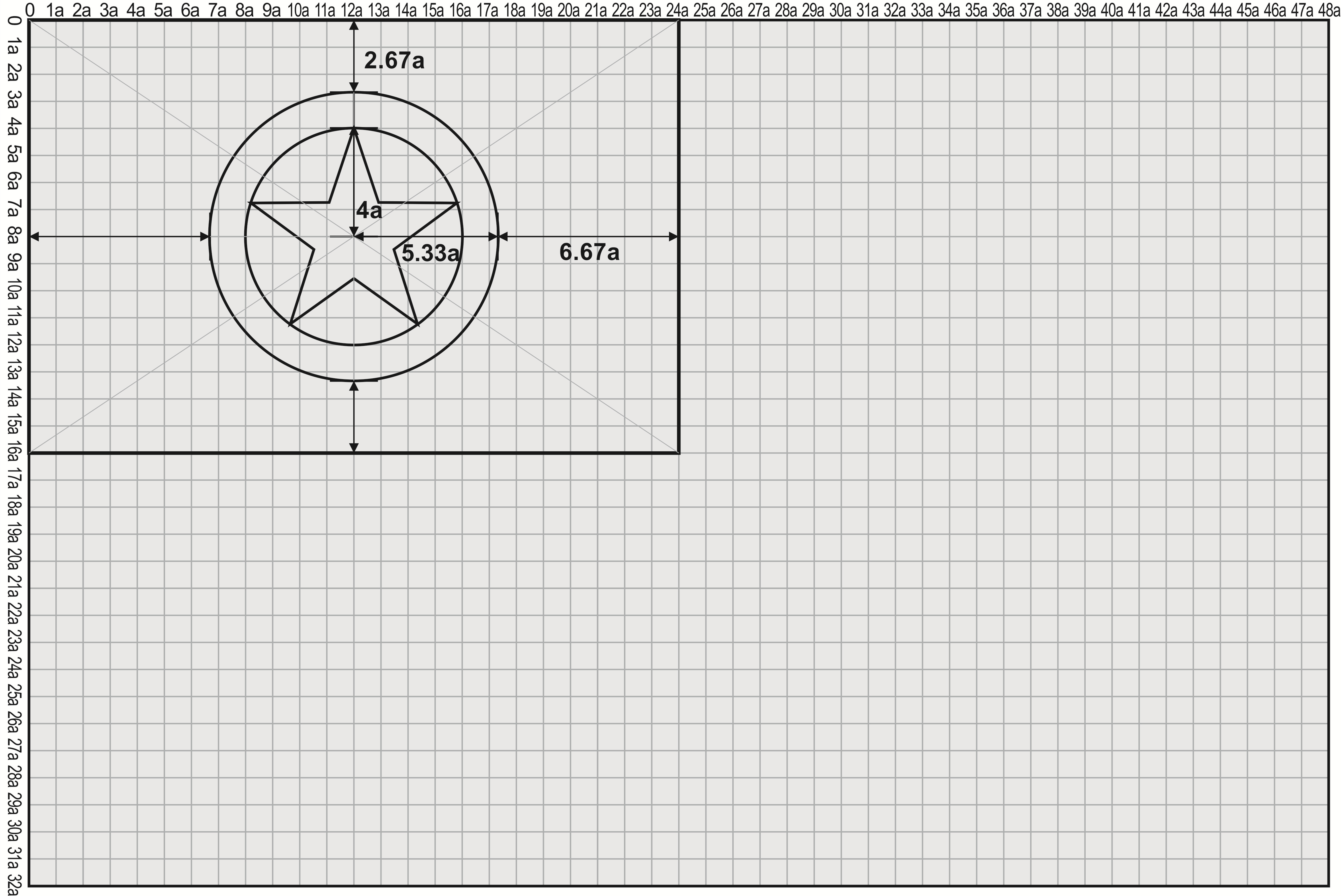 团旗尺寸坐标图(按与通用规格边长最小尺寸1∶2的比例)