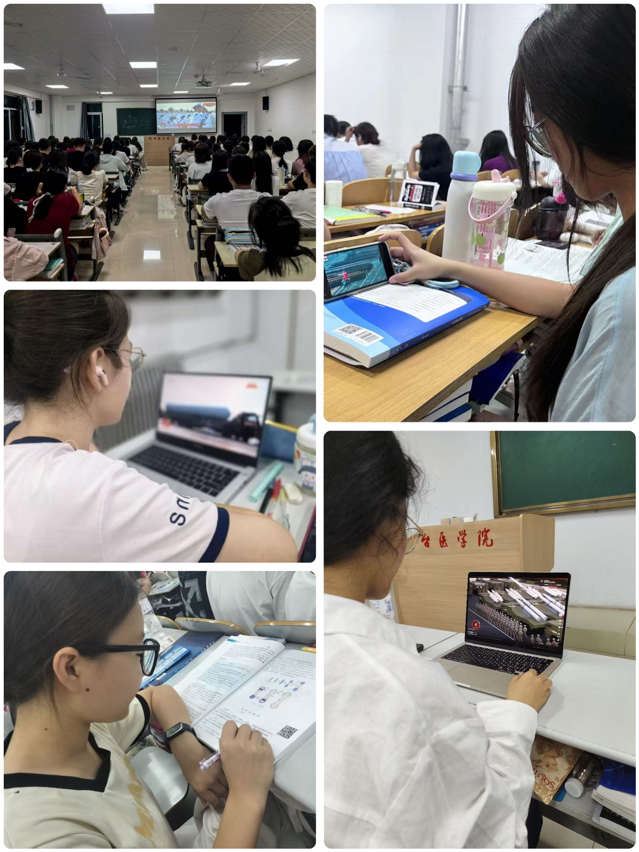 9月3日,一个注定被历史铭记的日子,纪念中国人民抗日战争暨世界反法西斯战争胜利80周年大会在北京天安门广场盛大举行。这场举世瞩目的阅兵仪式,如同一部雄浑壮阔的史诗,每一个画面都深深烙印在我们邢医学子心中,让我们内心久久不能平静。同学们端坐于课桌前,专注观看九三阅兵直播;屏幕上,受阅队伍整齐列阵,尽显威武气势。