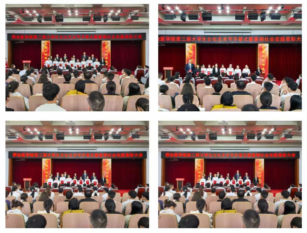 会上宣读了《邢台医学院第二届大学生文化艺术节开幕式的通知》《邢台医学院2025年暑期社会实践活动表彰决定》,为“燕归巢”暑期社会实践活动和“三下乡”社会实践活动优秀个人、优秀团队、优秀教师代表分别进行了颁奖。2024级临床3班郭丙艺同学作为第一届大学生文化艺术节获奖团队代表发言,他倡议同学们在学好专业的同时注重涵养情怀、提升审美、激发创造力,成长为有温度、有情怀的医务工作者。