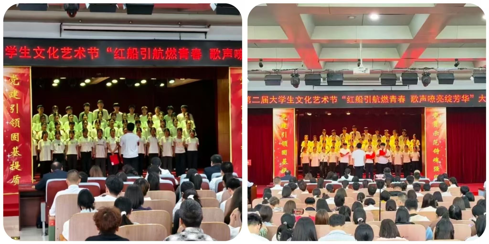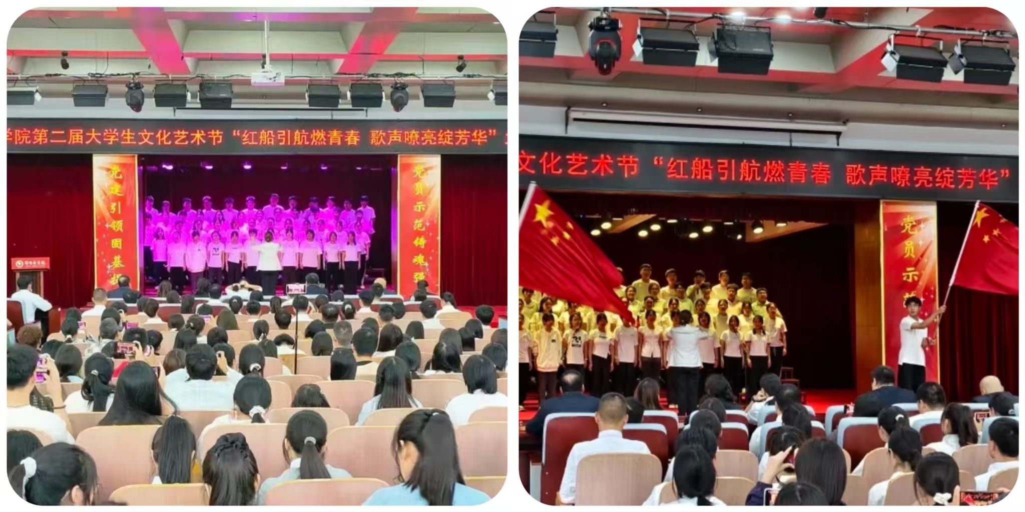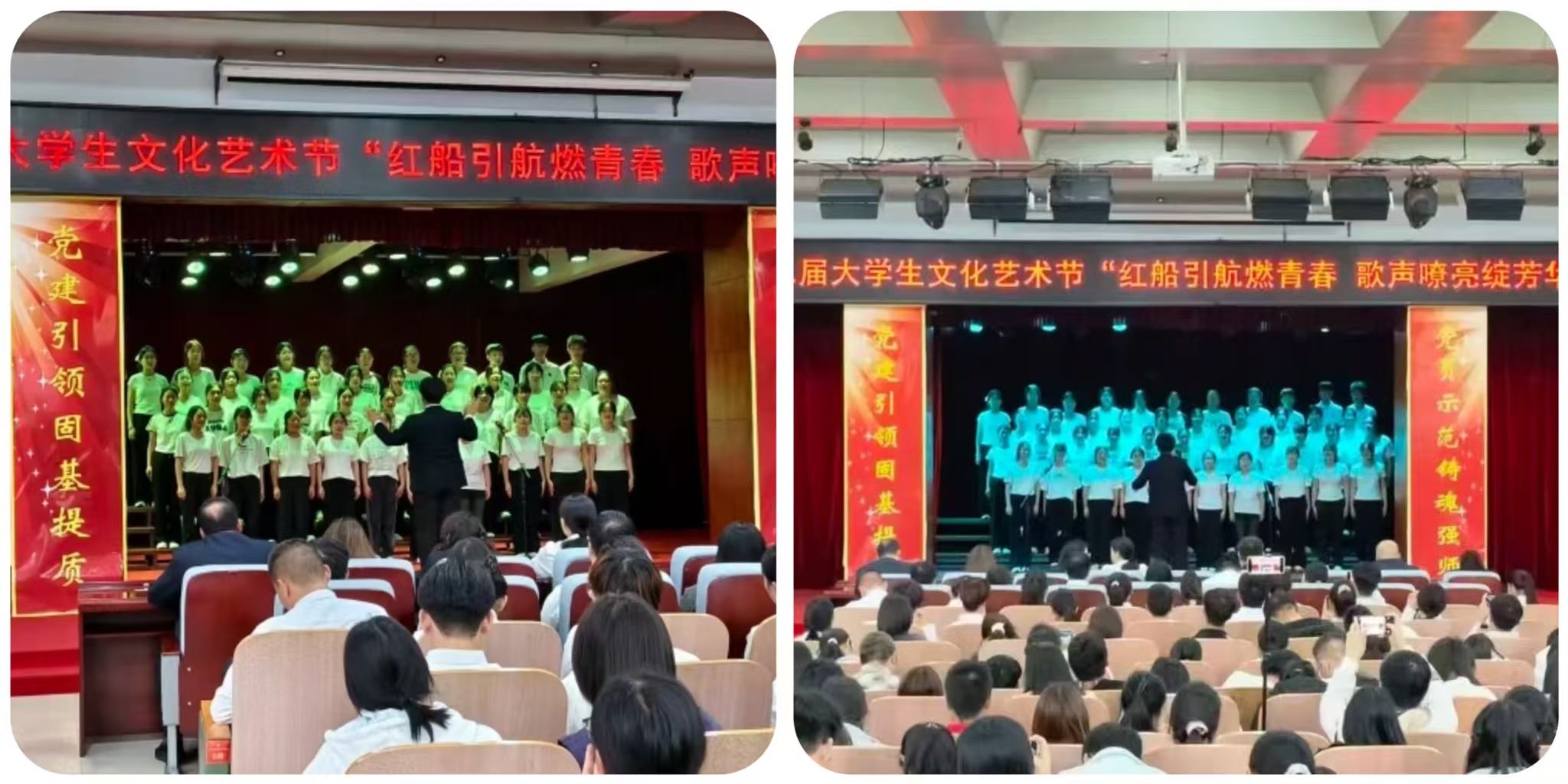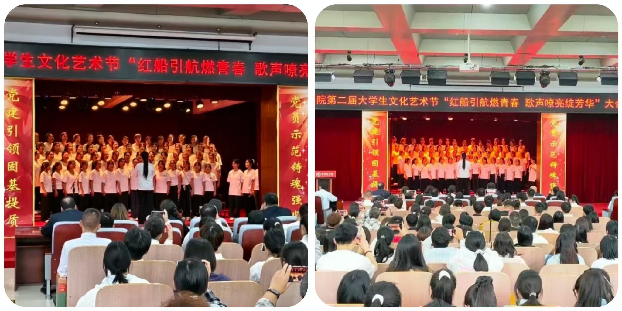 为赓续红色基因、彰显新时代青年风采,近日,我校第二届大学生文化艺术节 “红船引航燃青春 歌声嘹亮绽芳华” 大合唱比赛在学校报告厅盛大启幕。赛事由口腔医学系团总支精心主办。现场,团委老师、各系团总支书记、校级社团指导教师代表及300余名学生代表齐聚,共同见证这场融红色精神传承与青春活力绽放于一体的文化盛宴,让红色旋律成为连接信仰与青春的纽带。走进比赛现场比赛现场气氛炽热,掌声与欢呼声此起彼伏,十二支代表队身着整齐服装列阵登台,精神昂扬如朝阳。率先登场的口腔医学系第二代表队,以一曲《奔跑》拉开表演序幕。明快节奏里满是朝气;随后一曲《没有共产党就没有新中国》,手中国旗舞动、红绸飞扬,勾勒出青春与信仰交融的热烈图景。药学系第二代表队选唱《歌唱祖国》与《如愿》,前者气势恢宏,字里行间尽是自豪;后者细腻婉转,旋律中满藏感恩,唱出医学生的赤诚。医疗技术系第一代表队用《倔强》的激昂旋律诉说初心不改,以《明天会更好》的温柔声线寄语未来,满是向上力量。护理系第一代表队演绎的《如愿》与《唱支山歌给党听》,歌声深情庄重,在细腻唱腔中传递对家国的赤诚敬意。临床医学系第一代表队创新融合舞蹈与演唱,《紫荆花盛开》与《强军战歌》的旋律里,舞姿与歌声交织,尽显赤子之心与团队感染力。经多轮激烈角逐,中医系第二代表队凭借精湛演唱技巧与极具穿透力的舞台表现,成功斩获全场最高分,荣耀摘得桂冠。
