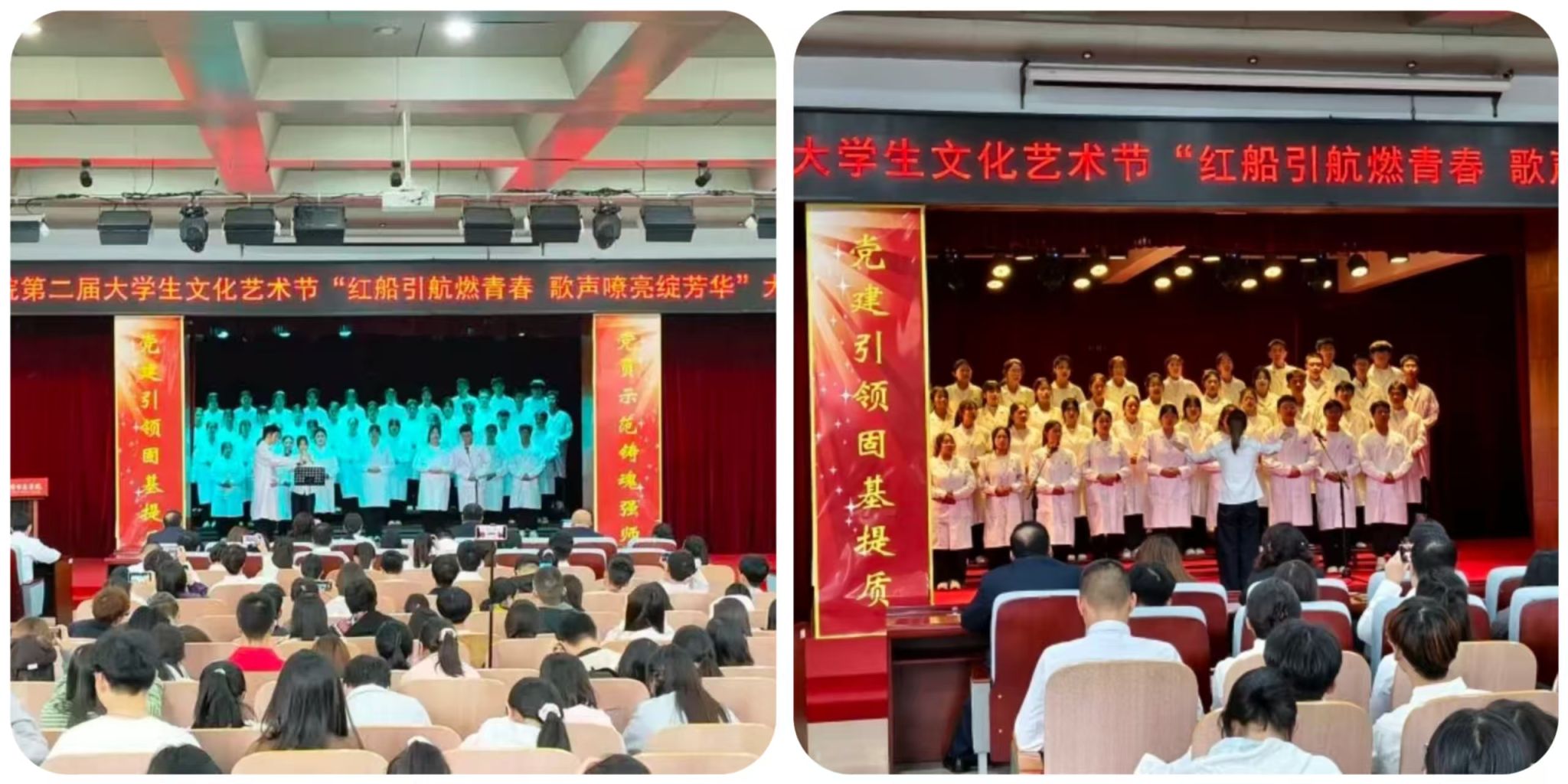 整场歌赛不仅是音乐的角逐,更是医学青年抒发理想与忠诚的深情舞台。他们以歌声传递信仰,用才艺展现情怀,彰显出新时代医学生的全面素养与炽热爱国心。白衣与旋律交汇,理性与感性相融,深刻诠释了“医者仁心,艺亦动人”的深厚内涵,也更坚定了他们以仁心服务人民、以专业守护健康的初心与使命。