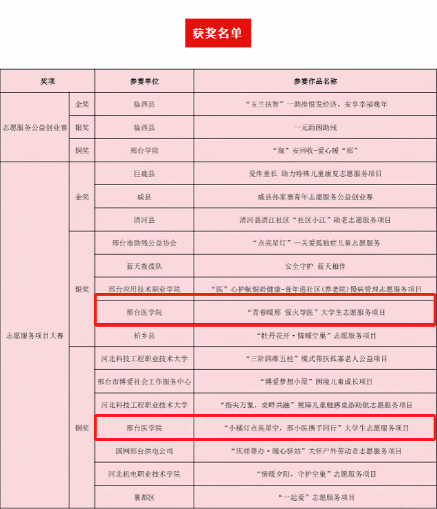 此次成绩源于校团委长期深耕志愿服务育人——引领青年扎根社区、大学生志愿服务基地、校园一线,在助老扶弱、关爱特殊人群等领域培育多个特色品牌。未来,校团委将以此次大赛为起点,深化志愿服务体系建设,培育更多优质项目,引领青年践行志愿精神,为邢台“温暖之城”建设注入青春力量。