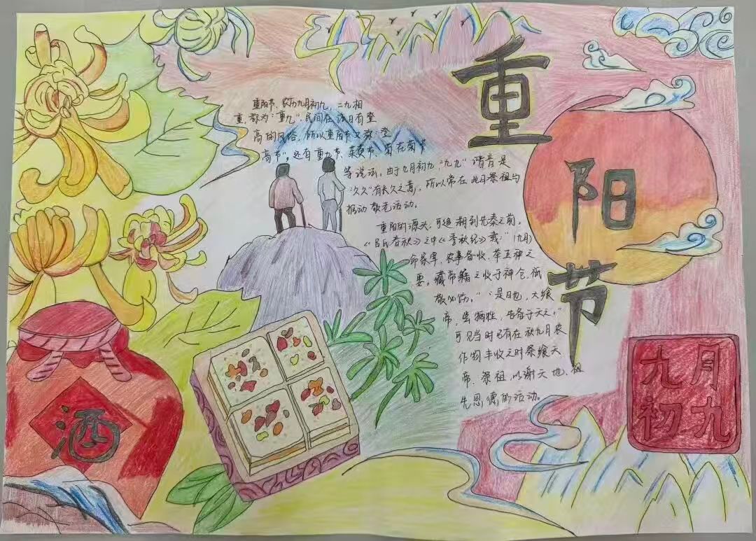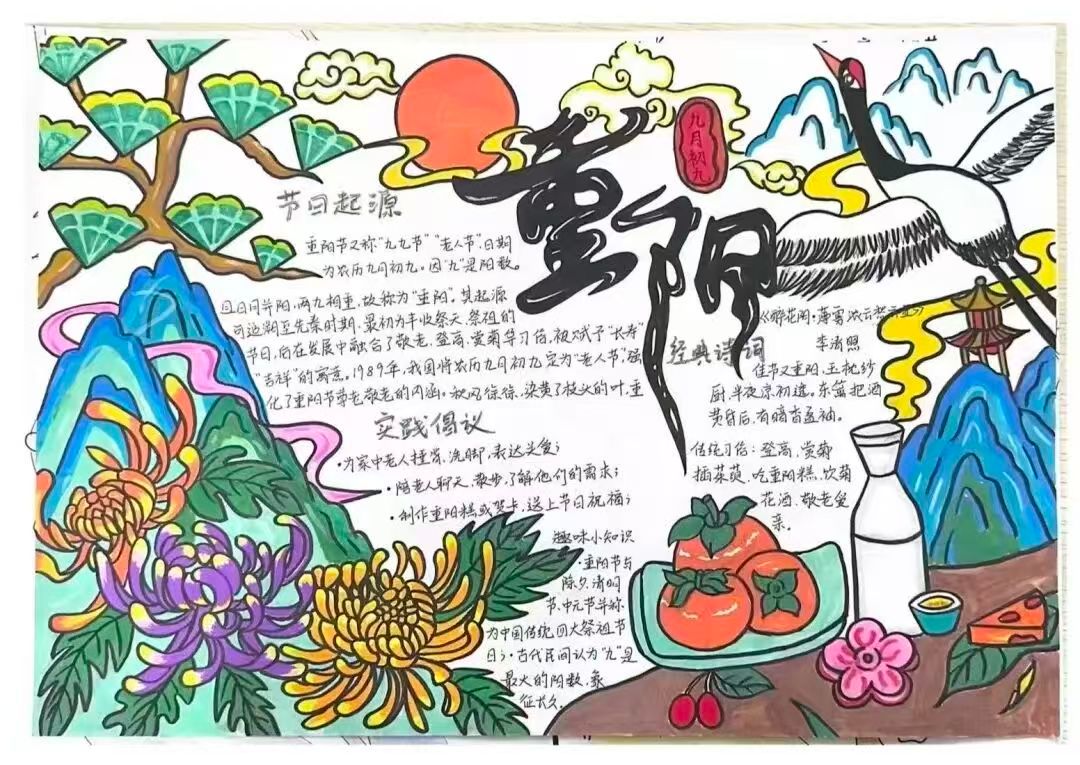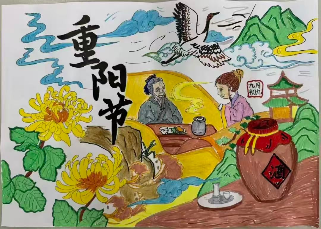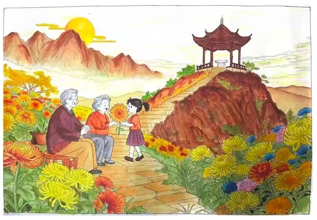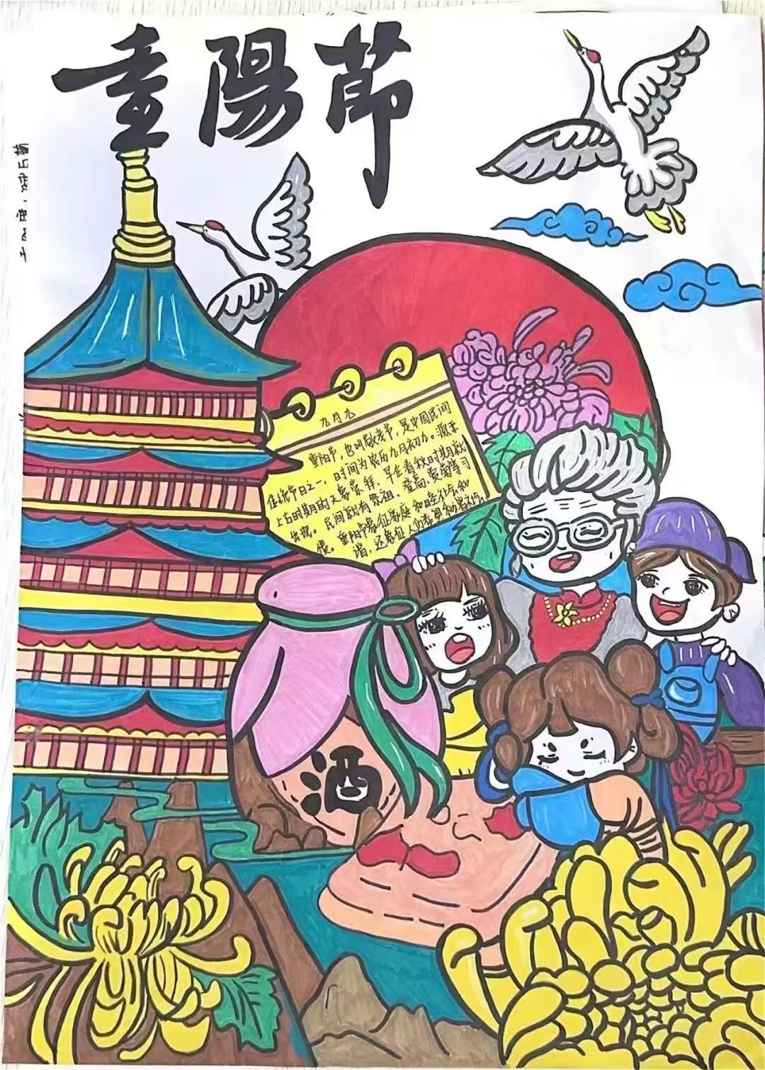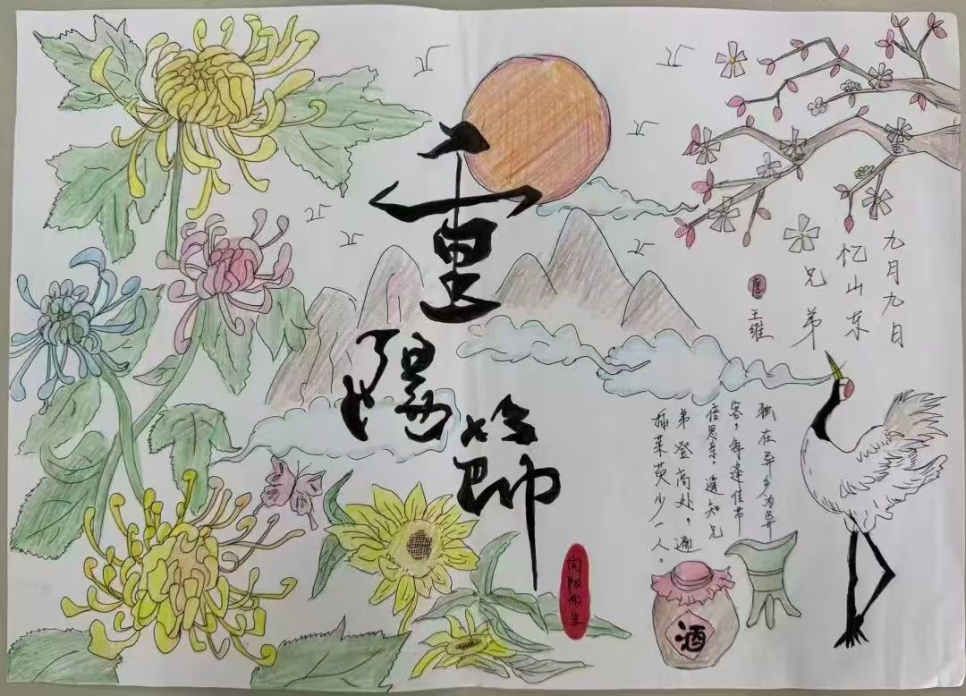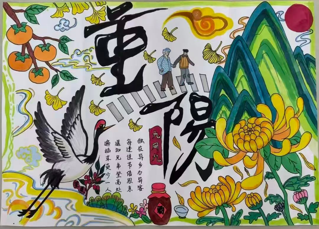 作品藏情,文化入心。此次活动中,同学们以笔为媒,用温馨雅致的创作勾勒重阳韵味、传递敬老祝福,强化行动自觉,让尊老爱老的文明风尚在活动中生根结果、久久传扬。