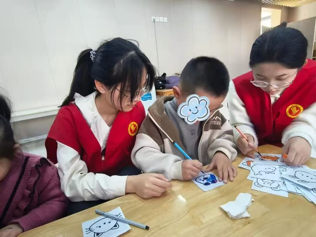 近日,我校大学生“小橘灯”助残协会志愿者骨干走进市爱晚红枫康复医院,开展“小橘灯”暖童心公益活动,将康复训练融入趣味互动,为特殊儿童送去温暖与欢乐。活动现场暖意融融。志愿者提前备好萌趣动物涂色卡、安全颜料及康复辅助道具,将精细动作康复训练与彩绘活动巧妙结合。在志愿者一对一指导下,孩子们握笔涂色时,手腕转动、手指配合等动作得到针对性锻炼,原本单调的图案在指尖绽放活力,专注的小脸上满是期待。