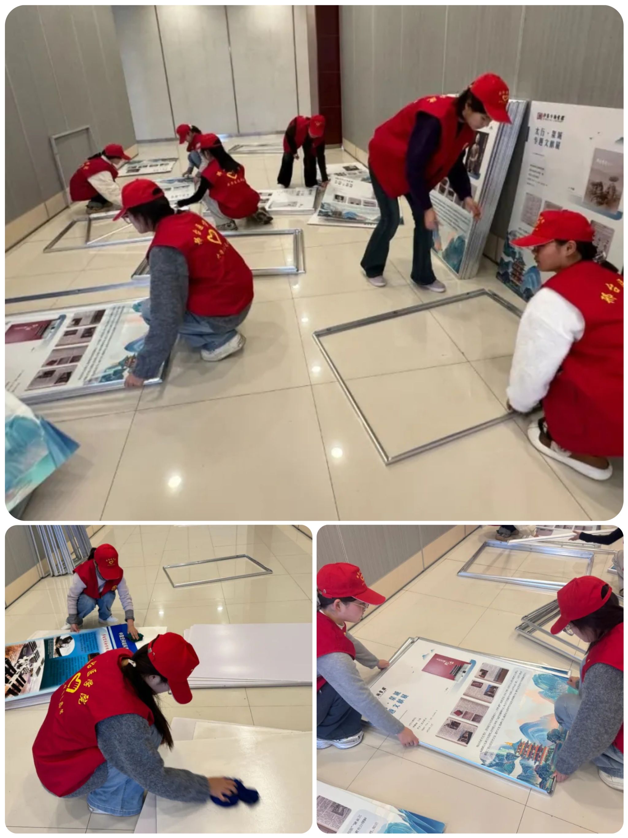 活动期间,12名大学生志愿者骨干在市图书馆方工作人员统筹下迅速投入工作。他们手持清洁工具,对50余块展陈展板进行全方位擦拭,从边框缝隙到展示版面,不放过任何细微尘渍,让每块展板都以洁净质感承载作品温度。随后,志愿者们默契配合完成科幻画装框工序,指尖轻稳固定画纸、精准校准框边角度,将200余幅承载少年奇思妙想的作品妥帖安置于展框中。