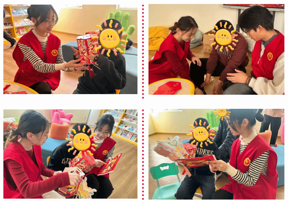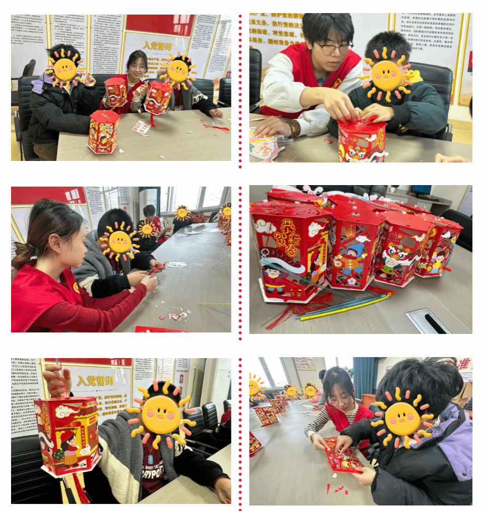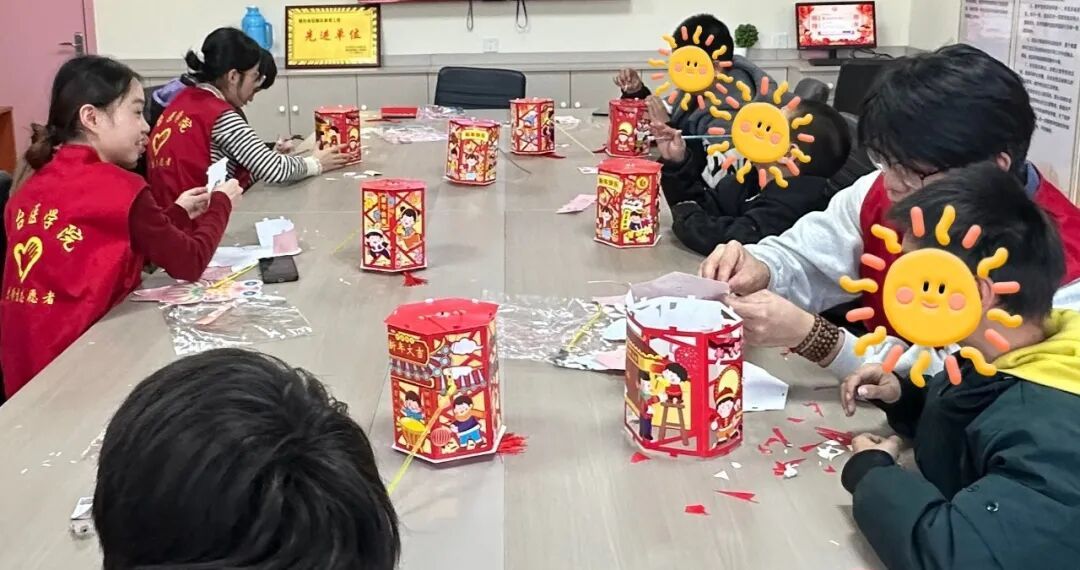 活动现场暖意融融,志愿者们以传统节日为主题,一边带领孩子们组装、装饰灯笼,一边生动讲述元旦、春节等传统节日的由来与习俗。剪裁彩纸、粘贴灯架、安装灯串,志愿者耐心指导每一个步骤,手把手协助孩子们完成制作。当一个个色彩鲜艳的灯笼被点亮,温暖的光晕映照着孩子们纯真的笑脸,现场充满了欢乐与温馨。志愿者的陪伴与讲解,让孩子们在实践中感受传统节日魅力,也切实体会到浓浓的关怀。