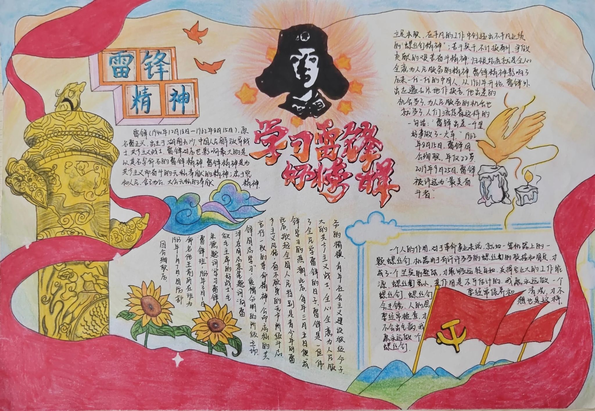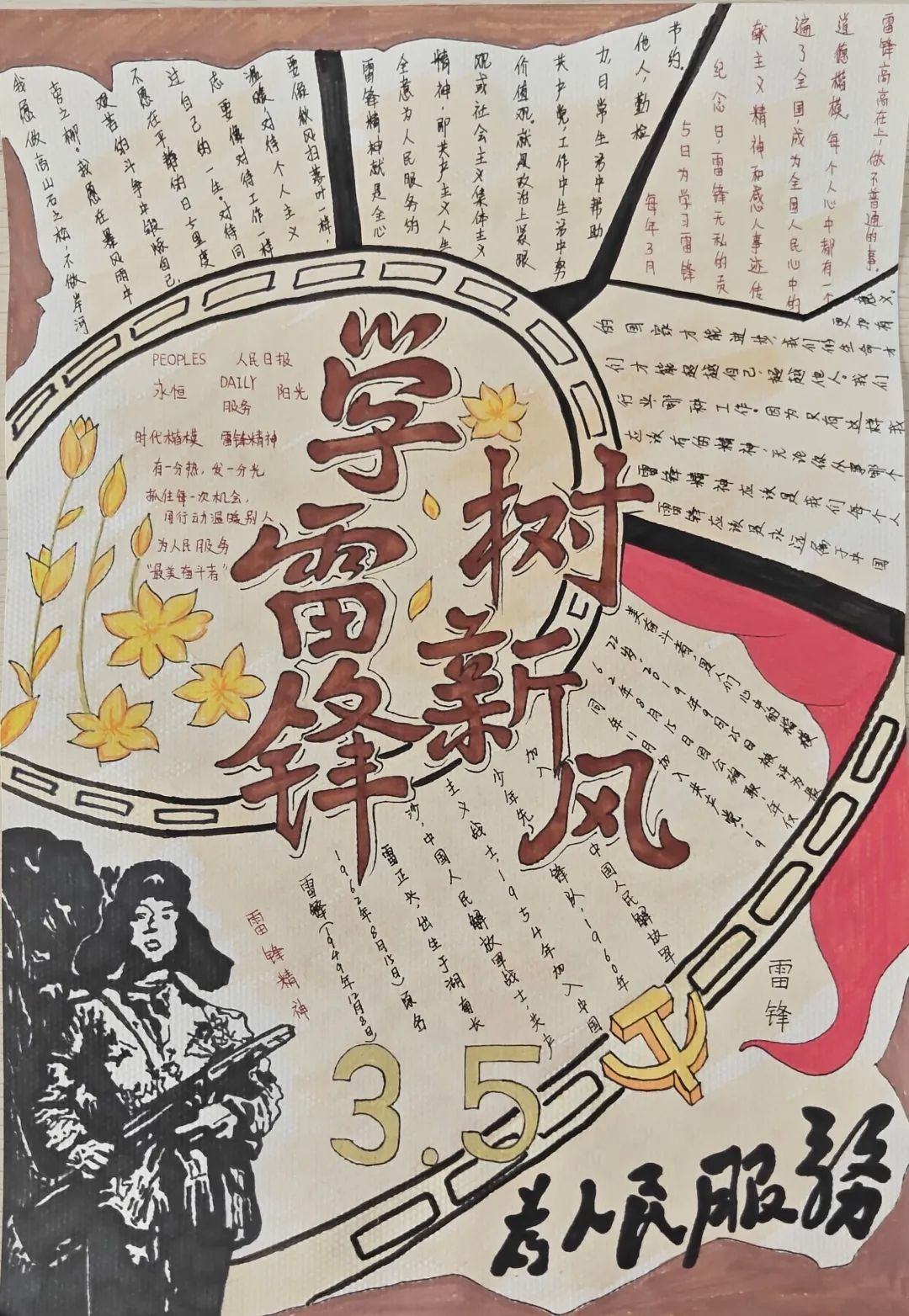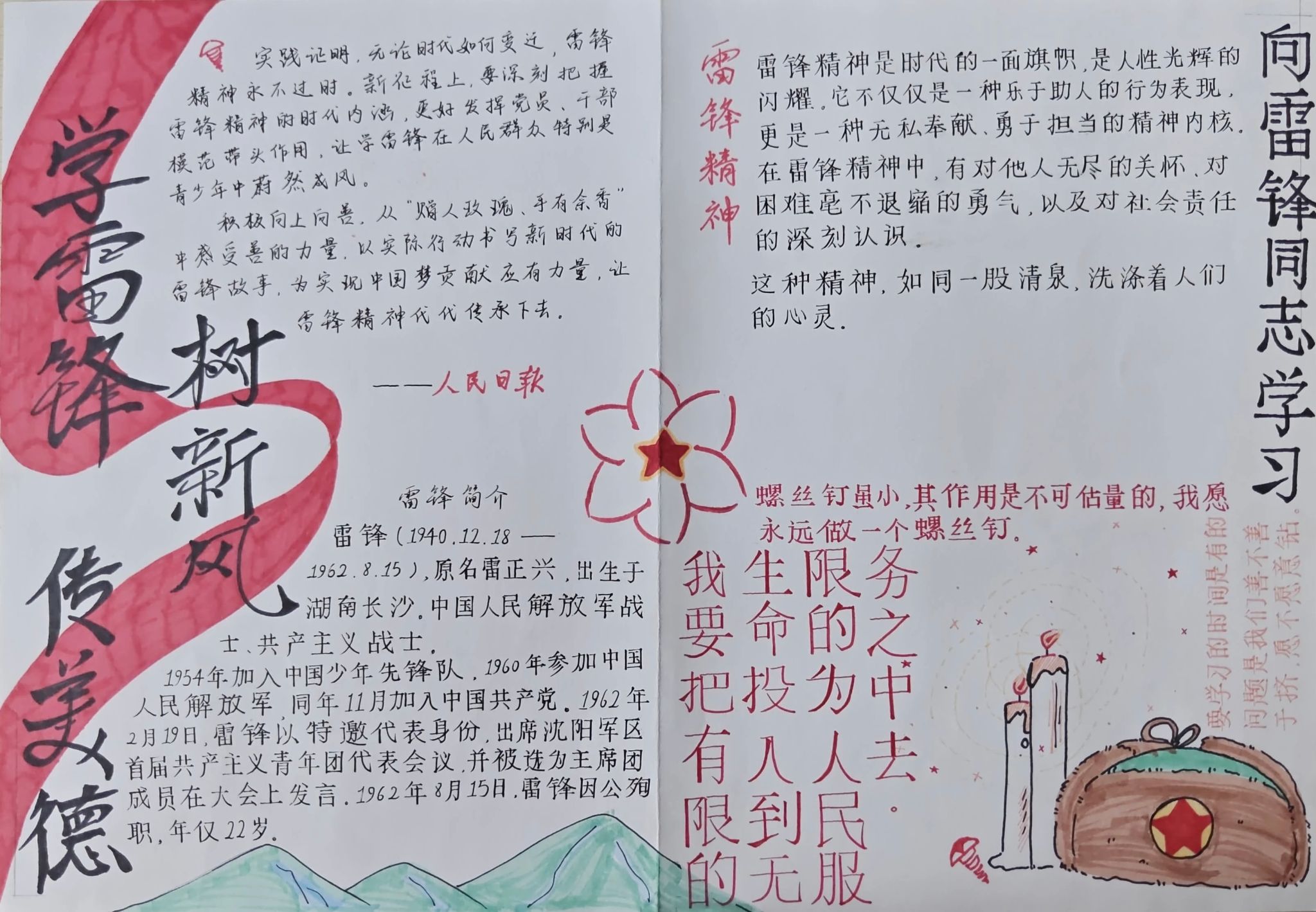 为进一步弘扬雷锋精神,挖掘其时代内涵,引导广大青年学子以实际行动践行新时代榜样力量,营造医者仁心、乐于助人的校园文化氛围,校学生会于2026年3月13日至26日面向全体在校大学生开展“学雷锋·树新风”主题手抄报活动。