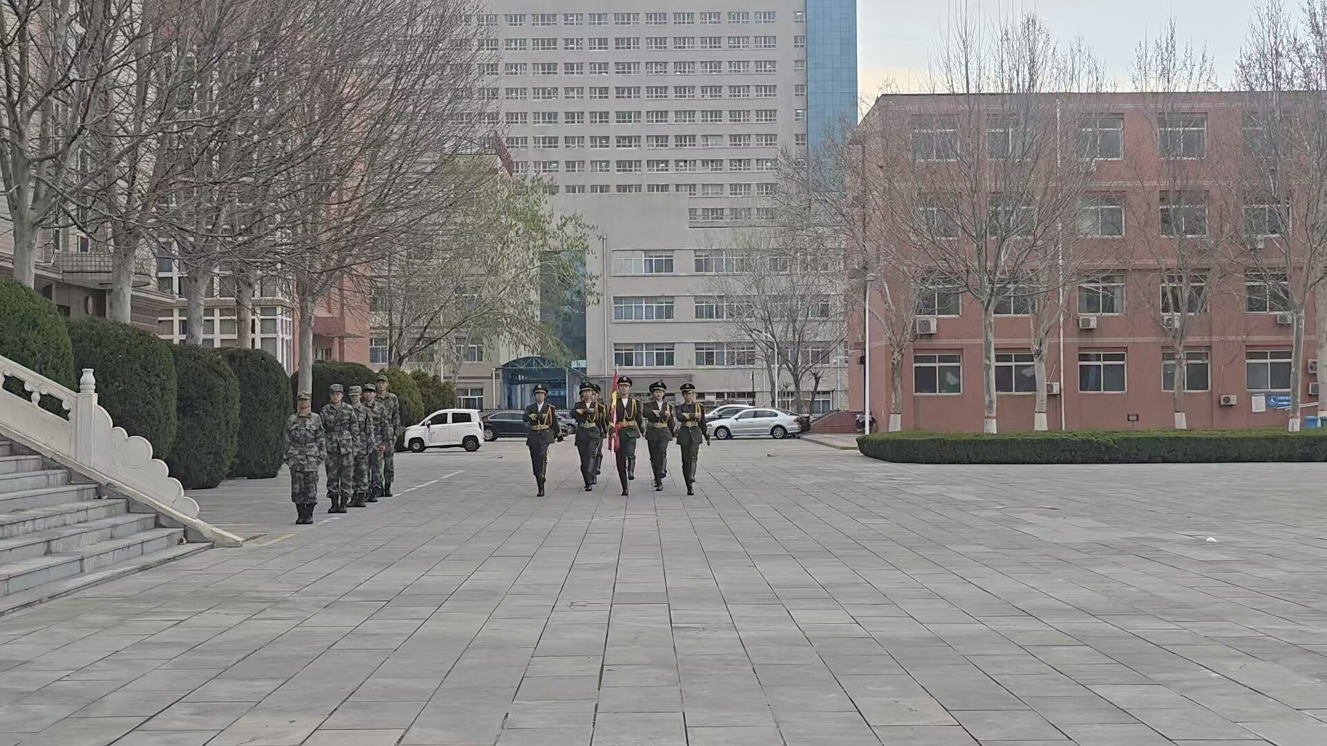 迎着清晨阳光,国旗护卫队护送国旗入场,全体学生干部肃立致敬,在雄壮的国歌声中行注目礼、齐唱国歌,目送五星红旗冉冉升起,在庄重的升旗仪式中厚植爱国情怀,筑牢思想根基。