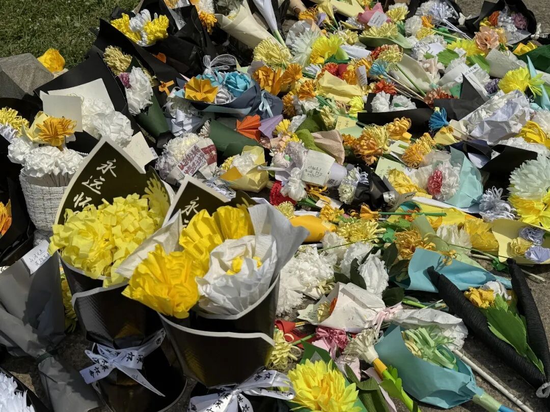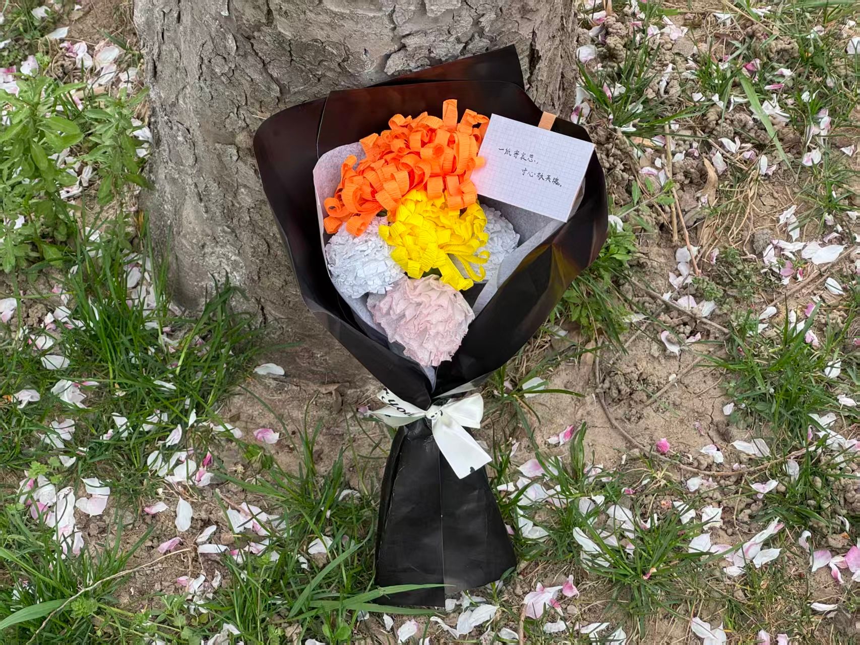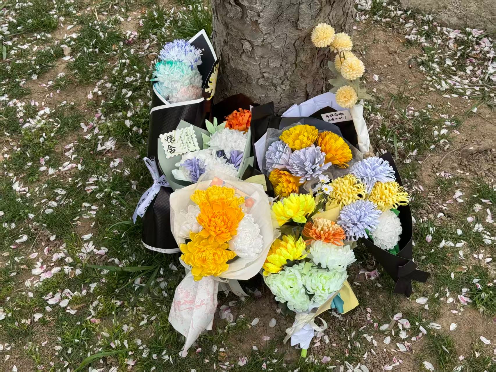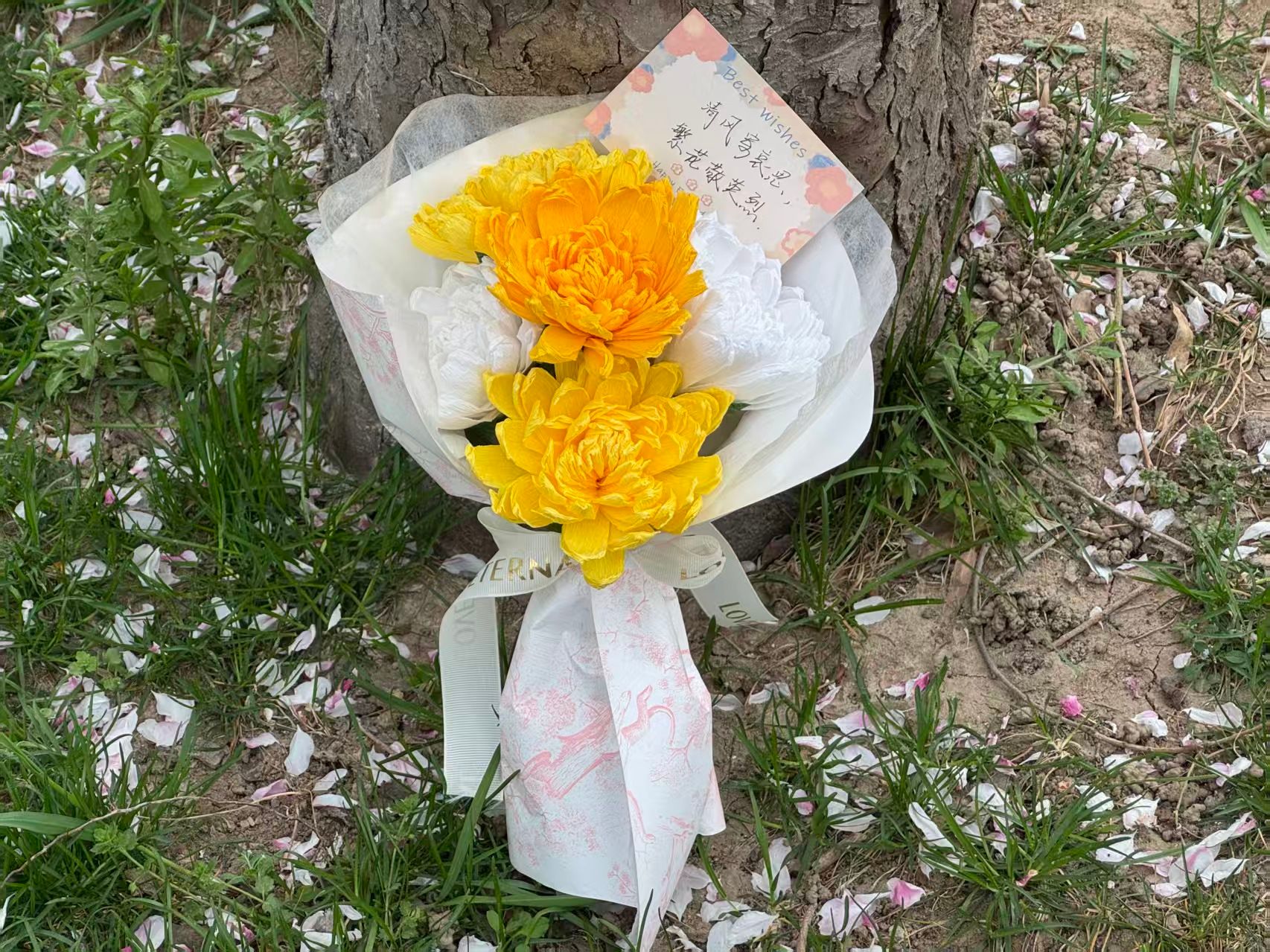 手工花束制作以彩色卡纸为主要物料,以菊花、康乃馨等象征缅怀的花卉为造型,搭配真挚寄语,将初心与敬意融入指尖。全校学子积极参与、踊跃创作,两校区共收集到作品230份。