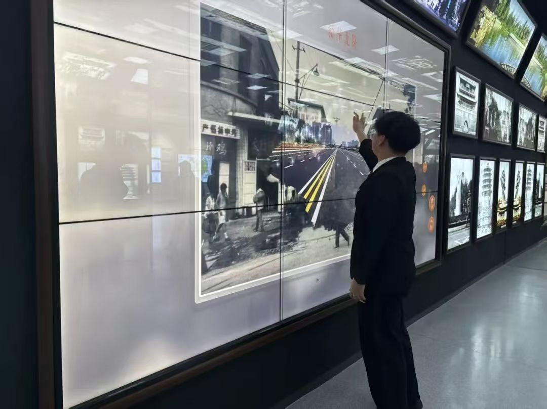 在历史巨变互动环节,学生触碰数据大屏进行场景变换,更直观感受到邢台古今的变化,手掌划过,老街巷变成柏油路,这一互动引得师生们惊叹。