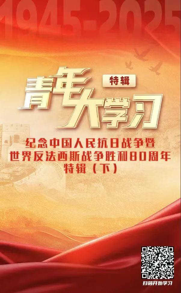 本期青年大学习,让我们一起学习习近平总书记的重要讲话,深刻感悟伟大抗战精神中天下兴亡、匹夫有责的爱国情怀,视死如归、宁死不屈的民族气节,不畏强暴、血战到底的英雄气概,百折不挠、坚韧不拔的必胜信念。新时代新征程,我们要团结奋斗、锐意进取,向着中华民族伟大复兴的光辉目标奋勇前进。